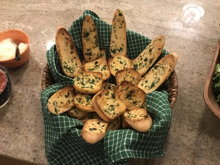 -roasted sweet potatoes-corn on the cob-garlic bread -Caesar salad-green beans with garlic-crab-stuffed mushroom caps